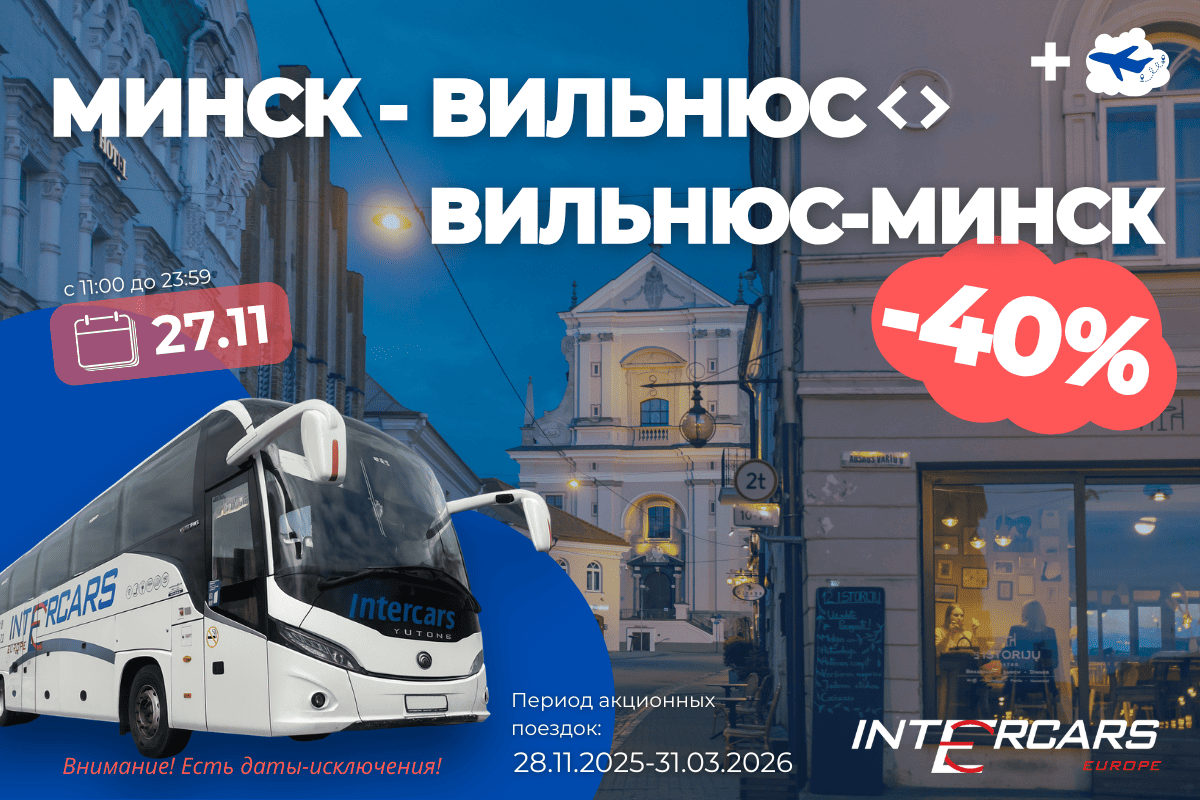 Intercars дарит скидку –40% на билеты из Минска в Вильнюс!