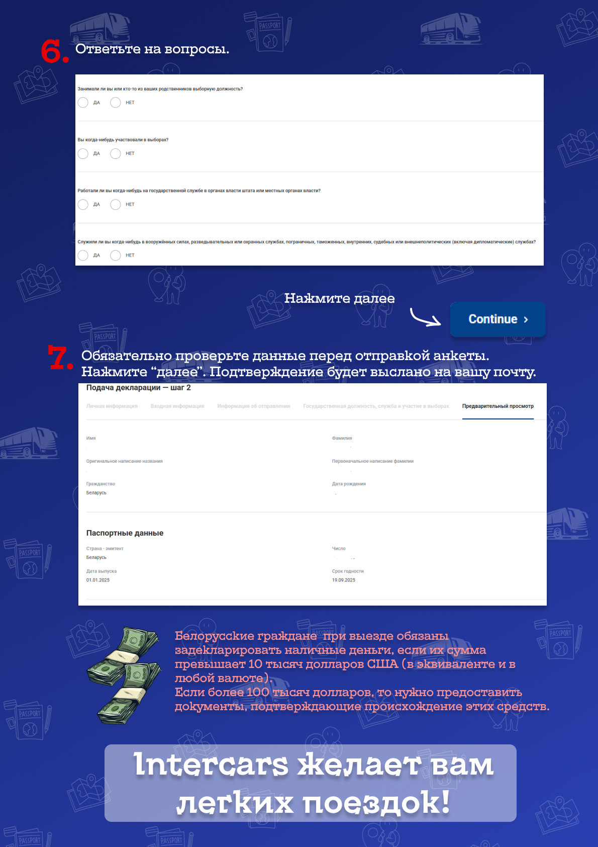 ❗️ Внимание! Штраф за предоставление ложной или неполной информации или непредоставление информации о пересечении границы может составить до 2000 EUR.